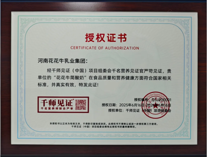 隨后雙方舉行授牌儀式。據(jù)了解,河南花花牛乳業(yè)集團是*通過千師見證(中國)項目組委會“千名營養(yǎng)師”認(rèn)證的企業(yè)。此次授牌含金量相當(dāng)之高,標(biāo)志著花花牛在質(zhì)量管控、技術(shù)創(chuàng)新、產(chǎn)品健康方面,為區(qū)域乳業(yè)高質(zhì)量發(fā)展樹立了新范式。